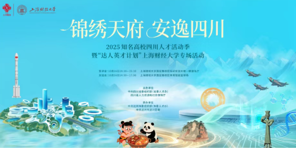 阅读>>为深入贯彻落实中央、省委系列战略部署,持续吸引优秀人才在川创新创业,四川省将举办“锦绣天府 安逸四川”2025知名高校四川人才活动季暨“达人英才计划”上海财经大学专场活动,组织近60家重点用人单位赴上海财经大学开展专场引才。诚挚邀请上海财经大学优秀学子和各界青年才俊踊跃参加,与四川携手共谱中国式现代化新篇章!(活动现场准备了精美的特色礼品和美味的四川美食哦)